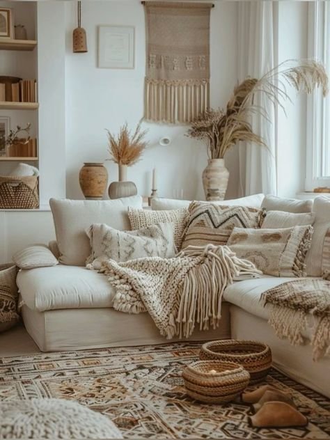 O Boho é sinónimo de conforto. Almofadas macias, mantas quentes e móveis convidativos compõem ambientes perfeitos para relaxar. A ideia é criar espaços que acolham, onde se possa sentir completamente à vontade.
