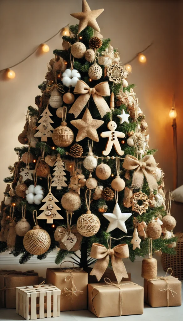A sustentabilidade continua a ser uma grande tendência este ano. Optar por decorações feitas de materiais naturais como madeira, juta, algodão e cerâmica não só é ecológico, mas também confere um charme rústico e acolhedor à sua árvore. Pense em enfeites feitos à mão, enfeites de palha e laços de tecido natural.