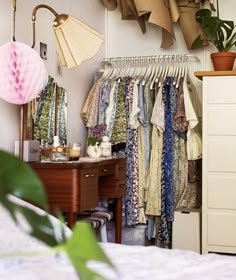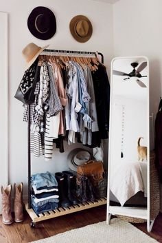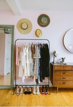 Escolhe um cabide com design bonito e combine com um espelho de chão e um banco pequeno para criar um cantinho fashionista. Troca as peças de acordo com a estação para renovar o visual do quarto.