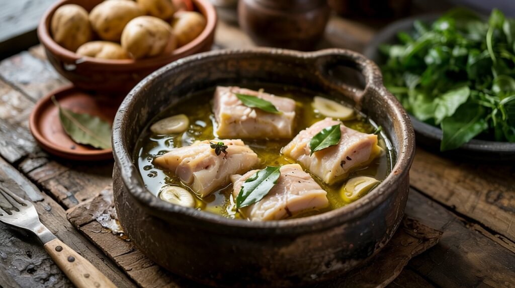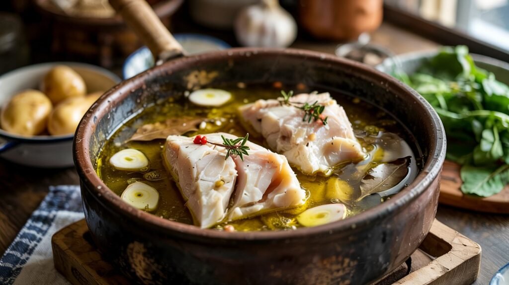 Bacalhau Confitado com Azeite, Alho e Louro