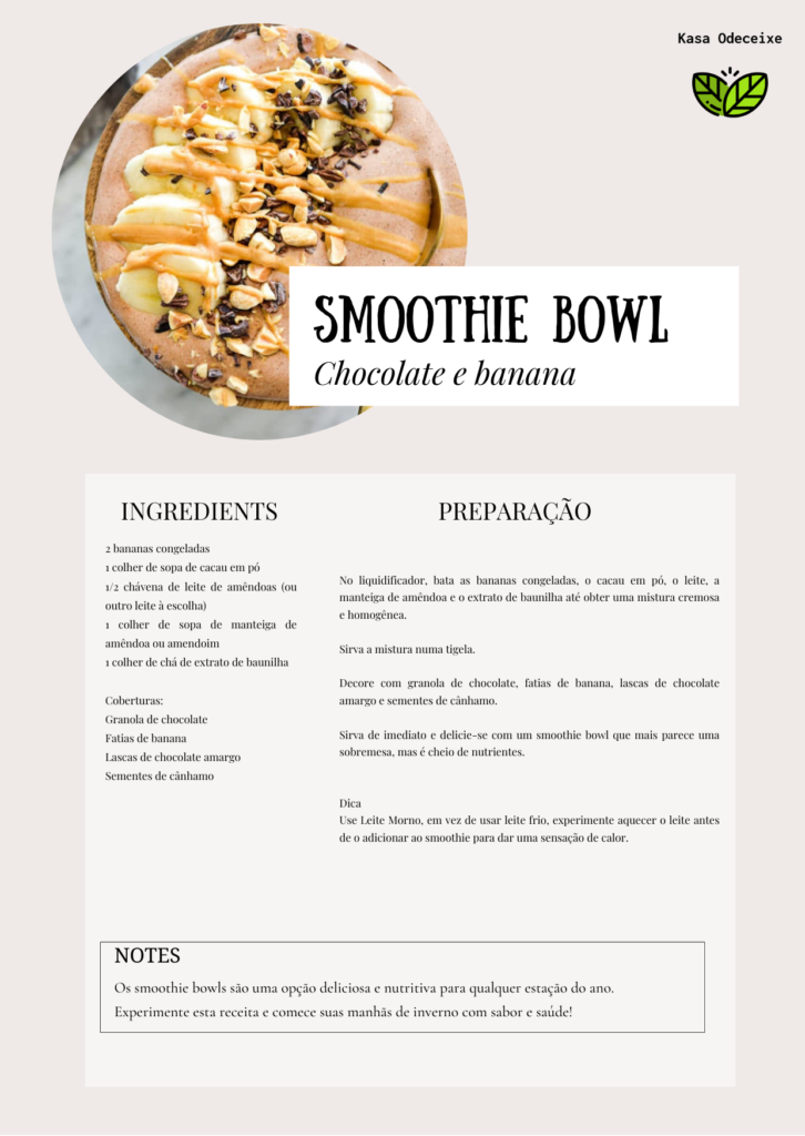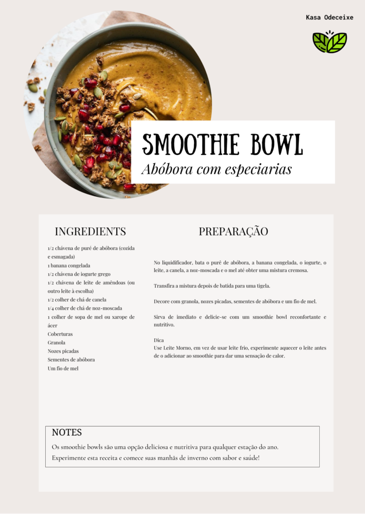 No inverno, muitos de nós procuramos refeições que não sejam apenas nutritivas, mas também reconfortantes e adaptadas ao clima mais frio. Uma excelente opção para começar o dia de forma saudável e deliciosa são os smoothie bowls. Embora sejam frequentemente associados ao verão, os smoothie bowls podem ser facilmente adaptados para o inverno com ingredientes que aquecem o corpo e trazem uma sensação de conforto. São também uma ótima forma de incluir uma variedade de nutrientes na sua dieta logo pela manhã, além de serem versáteis e saborosos, oferecem benefícios como: