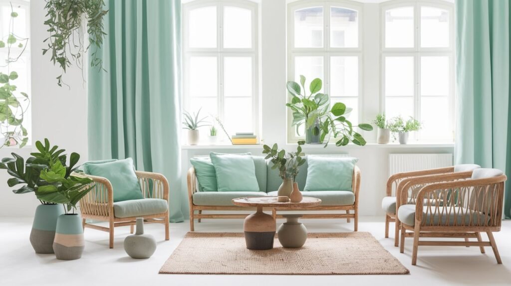 O verde, nas suas variações mais suaves, simboliza renovação e conexão com a natureza. Verde menta e tons de erva-doce são perfeitos para paredes, almofadas e acessórios, trazendo uma sensação de frescura e tranquilidade.
