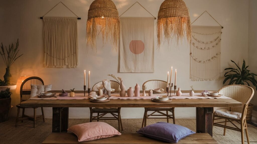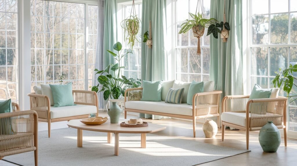 O desejo por um ambiente mais conectado com a natureza continua forte. Materiais sustentáveis, como bambu, rattan e madeira reciclada, fazem parte dessa tendência. Além disso, tecidos naturais, como algodão e linho, aparecem em cortinas, tapetes e almofadas, garantindo um toque leve e sofisticado.