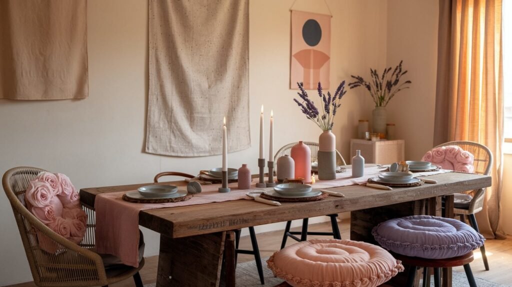 - Atualize a decoração da mesa: Toalhas de mesa em tons naturais, louças com estampas delicadas e velas perfumadas podem transformar o ambiente.