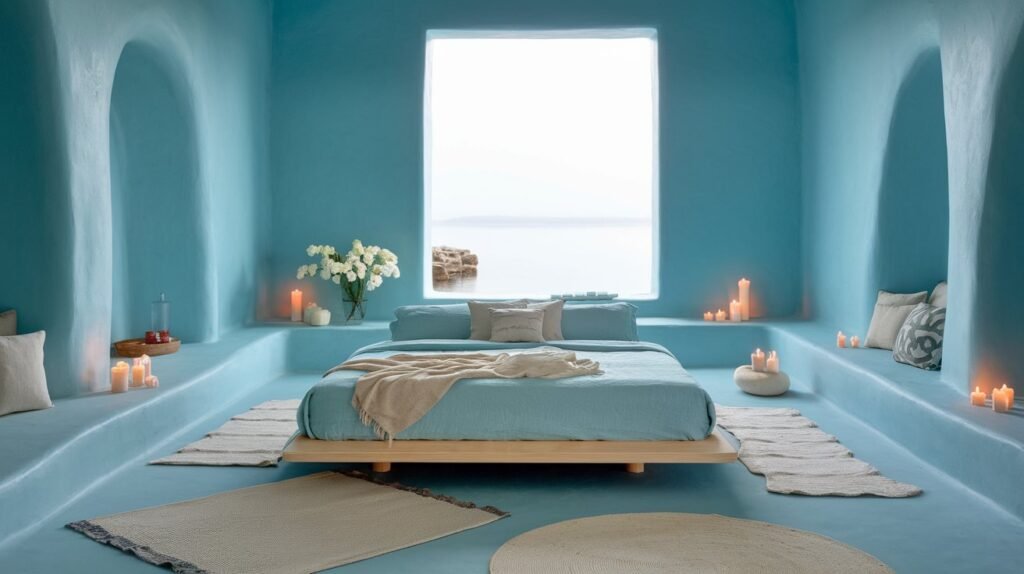 Cores como azul-claro e aqua evocam o céu limpo e o mar cristalino, ideais para criar uma atmosfera relaxante em qualquer casa. Para um toque primaveril, combine essas cores com materiais naturais, como madeira clara e linho.