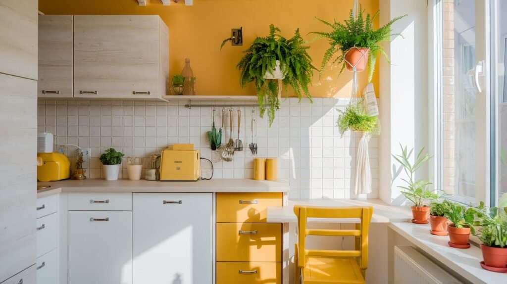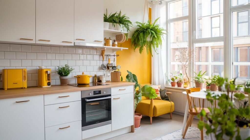 Para adicionar um toque vibrante, o amarelo é uma escolha certeira. Tons como amarelo solar e mostarda trazem alegria e luminosidade, funcionando bem em pequenos detalhes, como vasos, velas e mantas decorativas.
