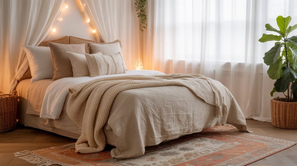 - Cores Quentes e Naturais: A Base do Refúgio Boho